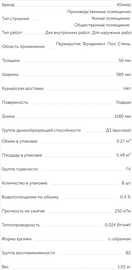 Пенополистирол экструзионный 50мм Юнкер 1180х580мм 0,68м²