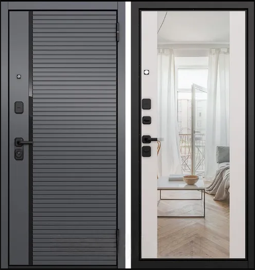 Толщина металла (полотно/короб) — 1/1,4 мм с ППП. Толщина полотна — 90 мм. Петли на упорных подшипниках 2 шт. Противосъёмные ригели. Наличник 70мм перекрывает зазоры до 55 мм